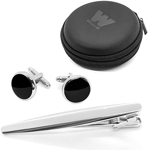 ダブリューアンドエム ネクタイピン カフス ボタン フォーマル シンプル セット タイピン 携帯用ミニポーチ付き オニキス 石 ブラック シルバー 黒 銀 丸 倉庫
